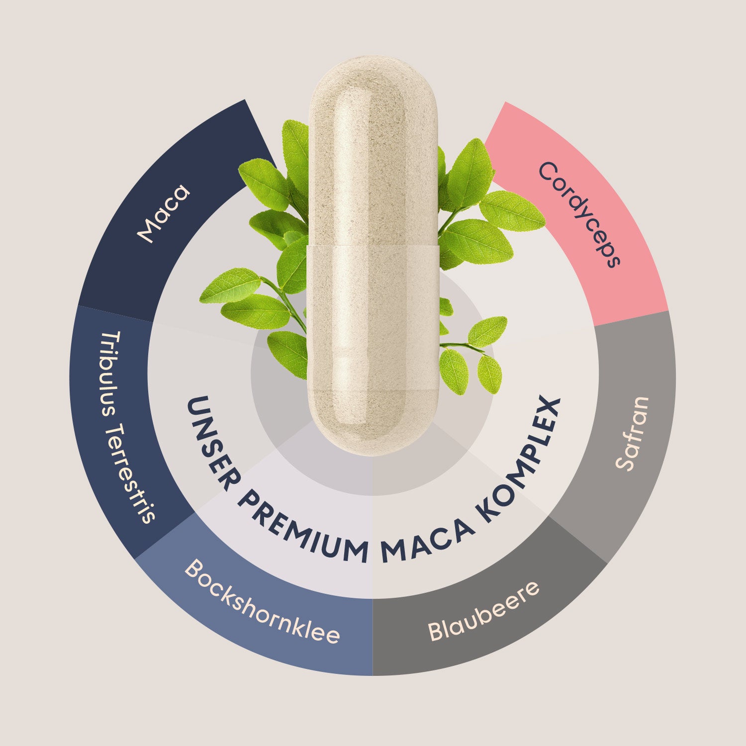 Der Grund liegt in der Verwendung hochwertiger Pflanzenextrakte. Zum Beispiel entspricht der enthaltene 150 mg Maca-Extrakt einem Extraktverhältnis von 20:1 – das heißt, er wurde aus 3.000 mg roher Maca-Wurzel gewonnen. Genauso verhält es sich beim Cordyceps-Extrakt: 300 mg bei einem Verhältnis von 10:1 ergeben ebenfalls eine Wirkstoffmenge von 3.000 mg.